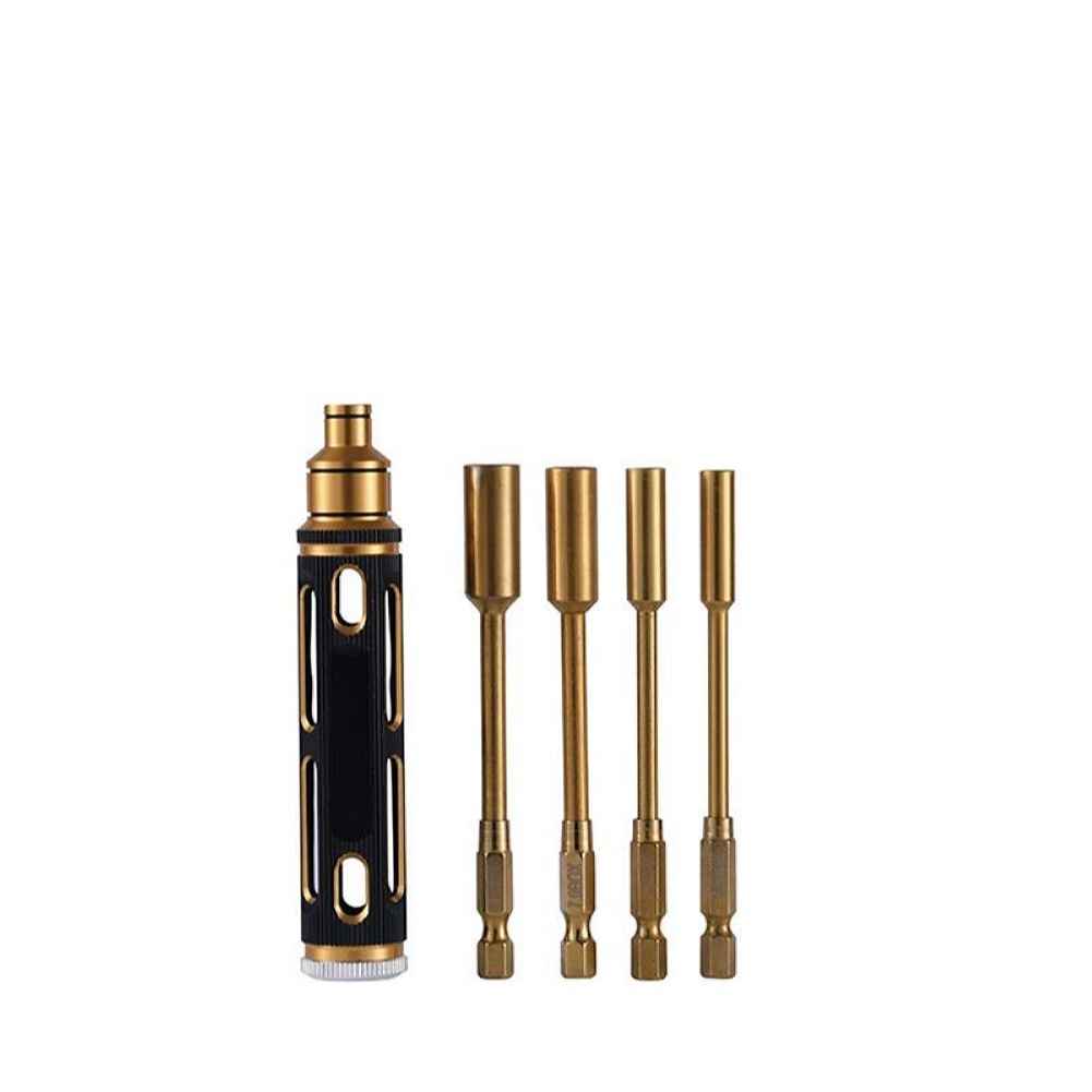 This 12-piece screwdriver and nut driver tool set is specifically designed for RC model enthusiasts. The set includes a range of hexagonal, Phillips, and slotted screwdrivers, with sizes from 1.5mm to 5.5mm, as well as nut drivers from 4.0mm to 5.5mm. Made in a gold and black color scheme, these tools are crafted for wear resistance and anti-rust properties, ensuring durability and a long service life. Whether you’re assembling or repairing your RC models, this versatile tool set offers the precision and reliability you need.