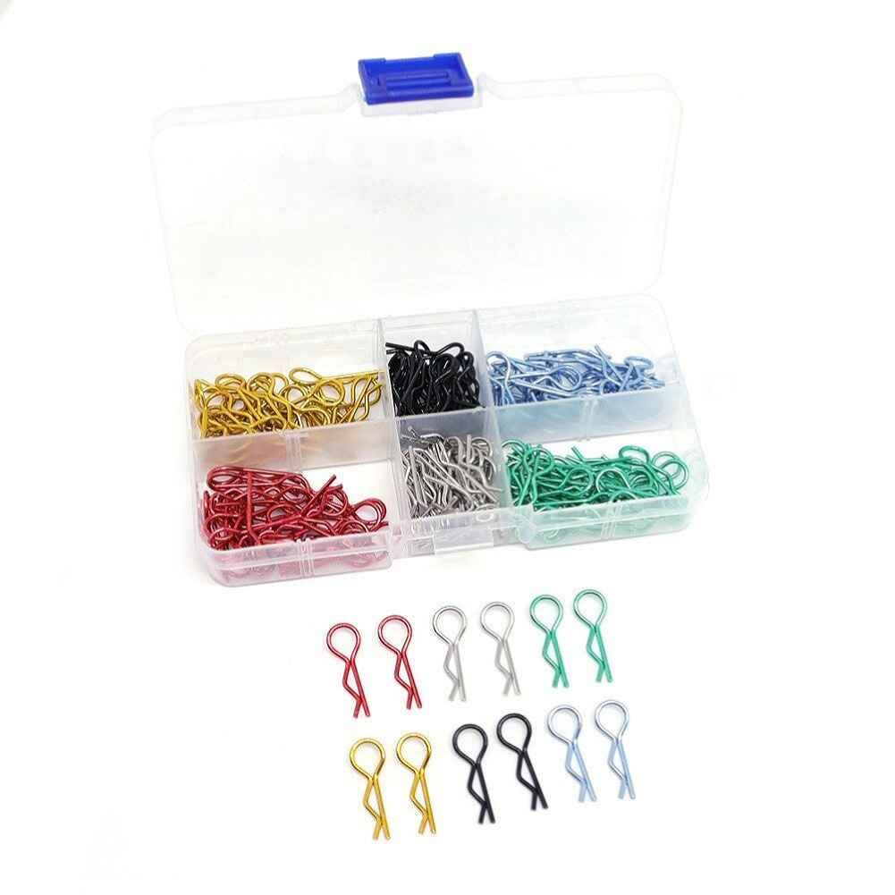 Enhance your RC car experience with this set of 180 Universal RC Body R-Type Clips Pins designed for 1/10, 1/12, 1/14, and 1/16 scale models. These high-quality clips are compatible with popular brands like Maxx, Losi, HPI, Tamiya, and HSP. The set includes an assortment of colors: gold, red, black, silver, blue, and green, allowing you to customize your RC car’s appearance. Each pin is crafted to ensure a secure fit for your RC car shell, making them an essential replacement part for any RC enthusiast. The package weighs 110g, ensuring lightweight yet durable performance.