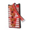 The 2 in 1 PG Parallel Charging Board is designed to efficiently charge up to four LiPo battery packs simultaneously, supporting 2S to 8S configurations. This board features an 18AWG silicone cable for balanced output and high-quality gold-plated connectors for reliable performance. It includes a safety protection T plug silicone cap and a thickened PCB copper foil, allowing for a secure charging current of up to 35A. Additionally, a 40A fuse is installed between any two groups of batteries to prevent damage due to excessive battery pressure.