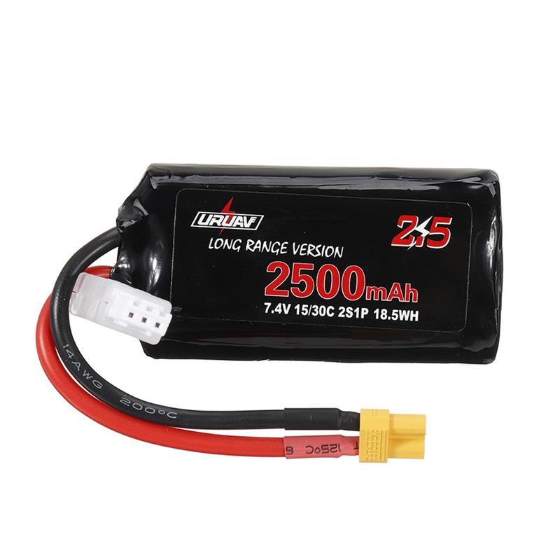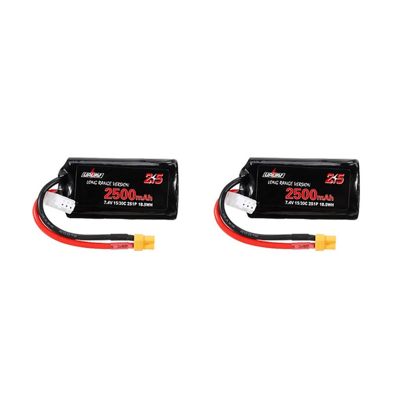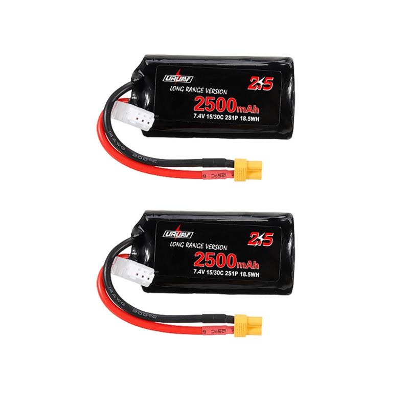 2Pcs URUAV 7.4V 2500mAh 15/30C 2S Long Range Li-ion Battery XT30 Plug for FPV Racing Drone