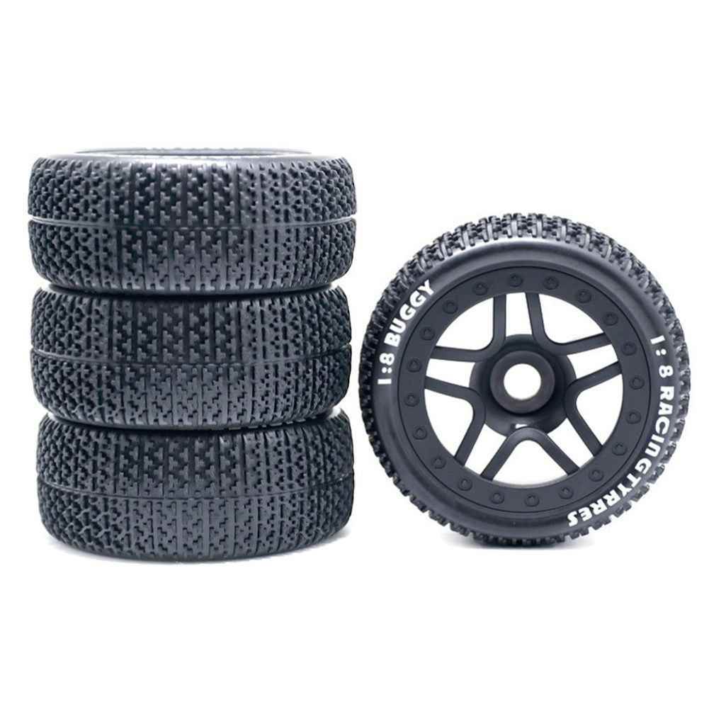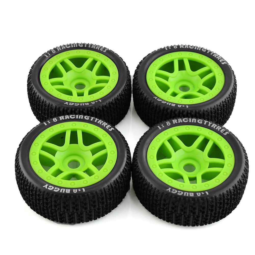 Upgrade your 1/8 scale RC racing car with this set of four off-road tires. Designed for durability and performance, these tires feature a robust plastic and rubber construction. They come with 17mm hex hubs, ensuring a secure fit for a variety of RC models, including ARRMA Maxx, Sledge, HPI, HSP, Kyosho, and ZD. Available in vibrant fluorescent green, blue, black, and brown, these tires are perfect for tackling rough terrains while adding a pop of color to your vehicle. Each tire measures 110mm in diameter and 45mm in width, providing excellent traction and stability for your racing adventures.
