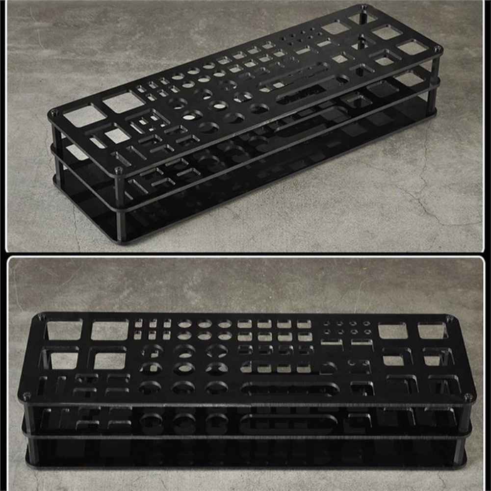 The 63 Holes Screwdriver Storage Rack is a versatile and efficient tool organizer designed to keep your workspace tidy and tools easily accessible. Made from durable acrylic and PP plastic, this black tool holder is lightweight at 217g and features easy installation with all necessary stand parts included. It accommodates a variety of tools such as screwdrivers, wire cutters, pliers, and scissors. Perfect for DIY enthusiasts, this unassembled tool stand offers the satisfaction of constructing your own storage solution. Its portability ensures you can move it effortlessly to suit your needs, making it an essential addition to any tool kit.