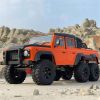 The AUSTARHOBBY AXX6 RTR 1/10 6WD RC Car is a high-performance rock crawler designed for Land Rover Defender enthusiasts. Available in grey, orange, and army green, it reaches a top speed of 30km/h. Equipped with a 60A brushed ESC speed controller and a 555 brushed high-speed motor, this RC car offers outstanding power. The 9g metal steering servo and 25kg metal servo ensure precise control. With metal drive shafts, CVD, oil-filled shock absorbers, and simulation self-locking rubber tires, it is built for rugged terrains. The differential lock gate bridge structure and high/low-speed gearbox enhance its off-road capabilities. Please note, batteries and charger are not included.