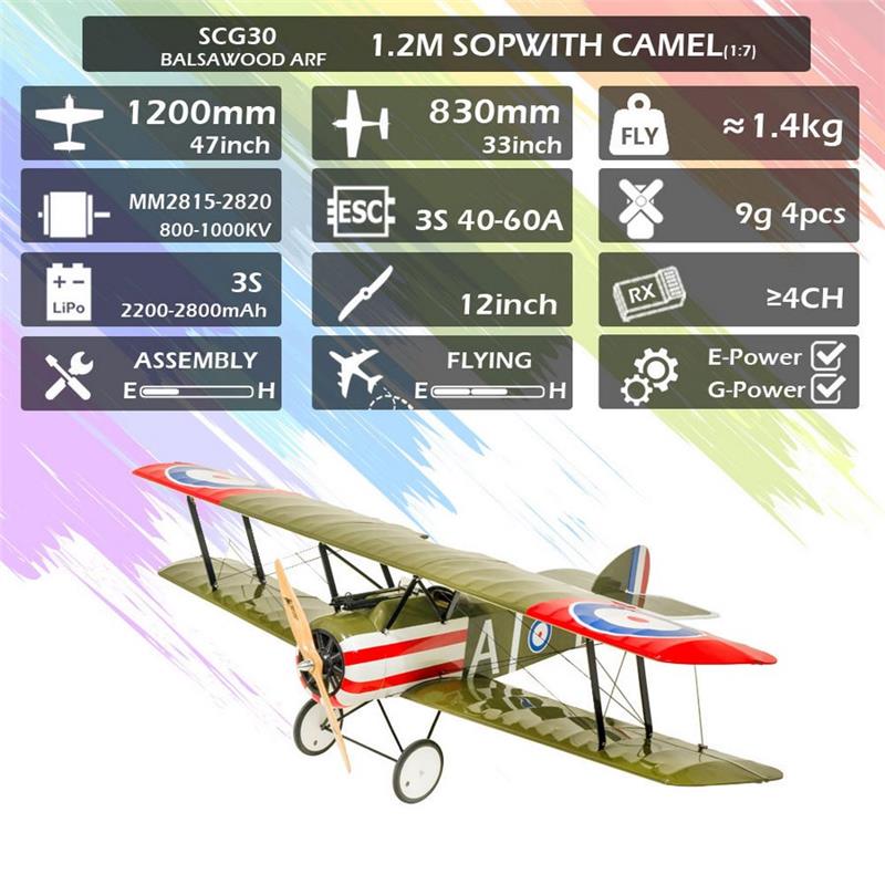 Dancing Wings Hobby SCG30 Sopwith Camel WW1 British Single-Seater Fighter 1200mm Wingspan Balsa Wood RC Airplane Biplane KIT/ KIT+Power Combo