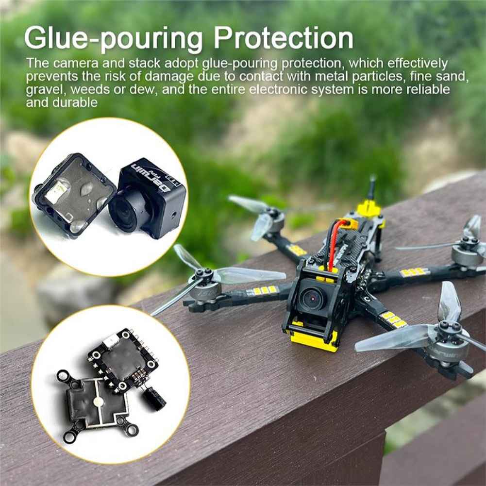 The camera and stack adopt glue – pouring protection, which effectively prevents the risk of damage due to contact with metal particles, fine sand, gravel, weeds or dew,