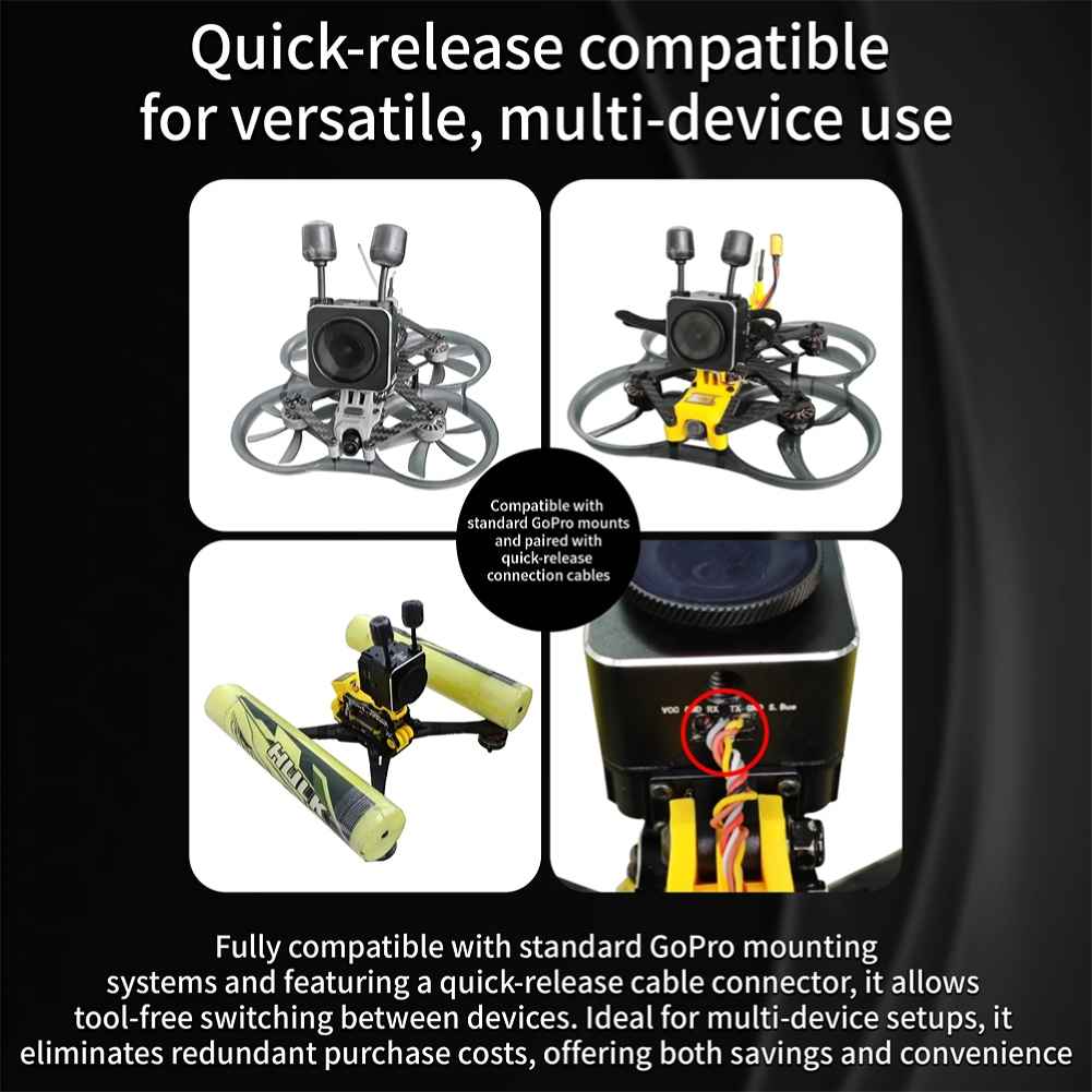 The DarwinFPV O4 Pro CNC Aluminum Waterproof Protective Case is expertly crafted for the DJI O4 Pro transmitter. This case, designed by the DarwinFPV team, offers precision engineering with a lightweight and durable aluminum build. It provides IP67-rated waterproof and dustproof protection, ensuring your equipment stays safe in various environments, from underwater filming to high-intensity drone flights. Its corrosion-resistant and scratch-proof surface maintains a sleek appearance even with prolonged use. The case also features a universal GoPro mount compatibility, advanced cooling to prevent overheating, and a glue-free installation process. This protective case is perfect for capturing stunning visuals, empowering creativity in any setting.