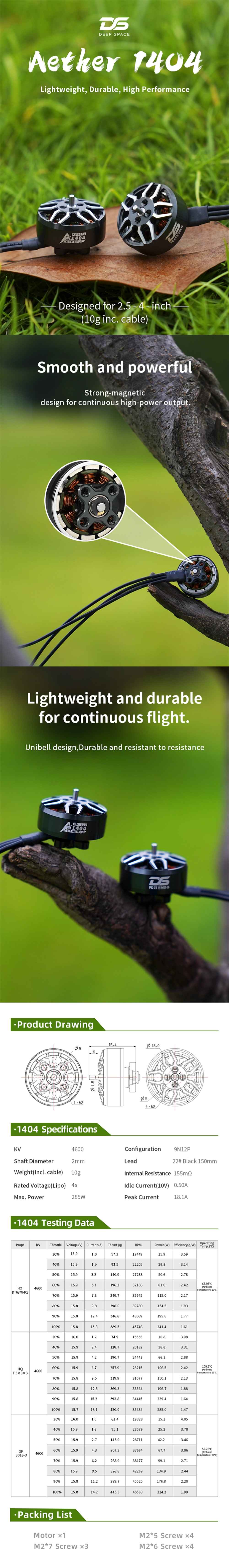 DeepSpace Aether 1404 4600KV 4S 2mm Shaft Brushless Motor for 2.5 3.5 inch RC FPV Racing Drone
