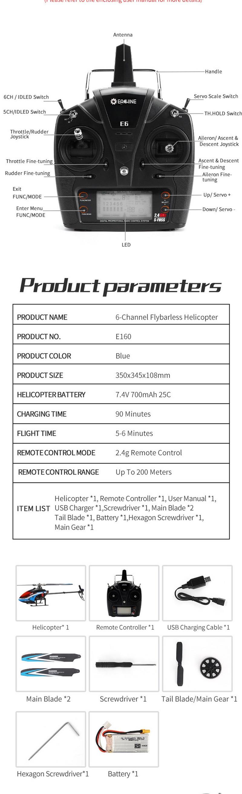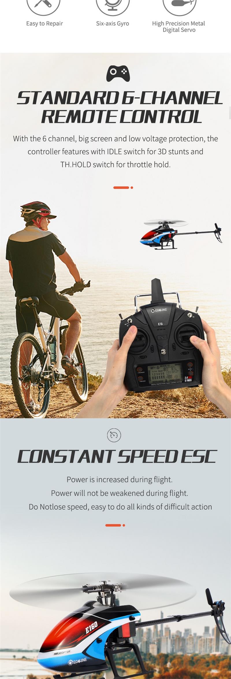 Eachine E160 V2 6CH Dual Brushless 3D6G System Flybarless RC Helicopter RTF