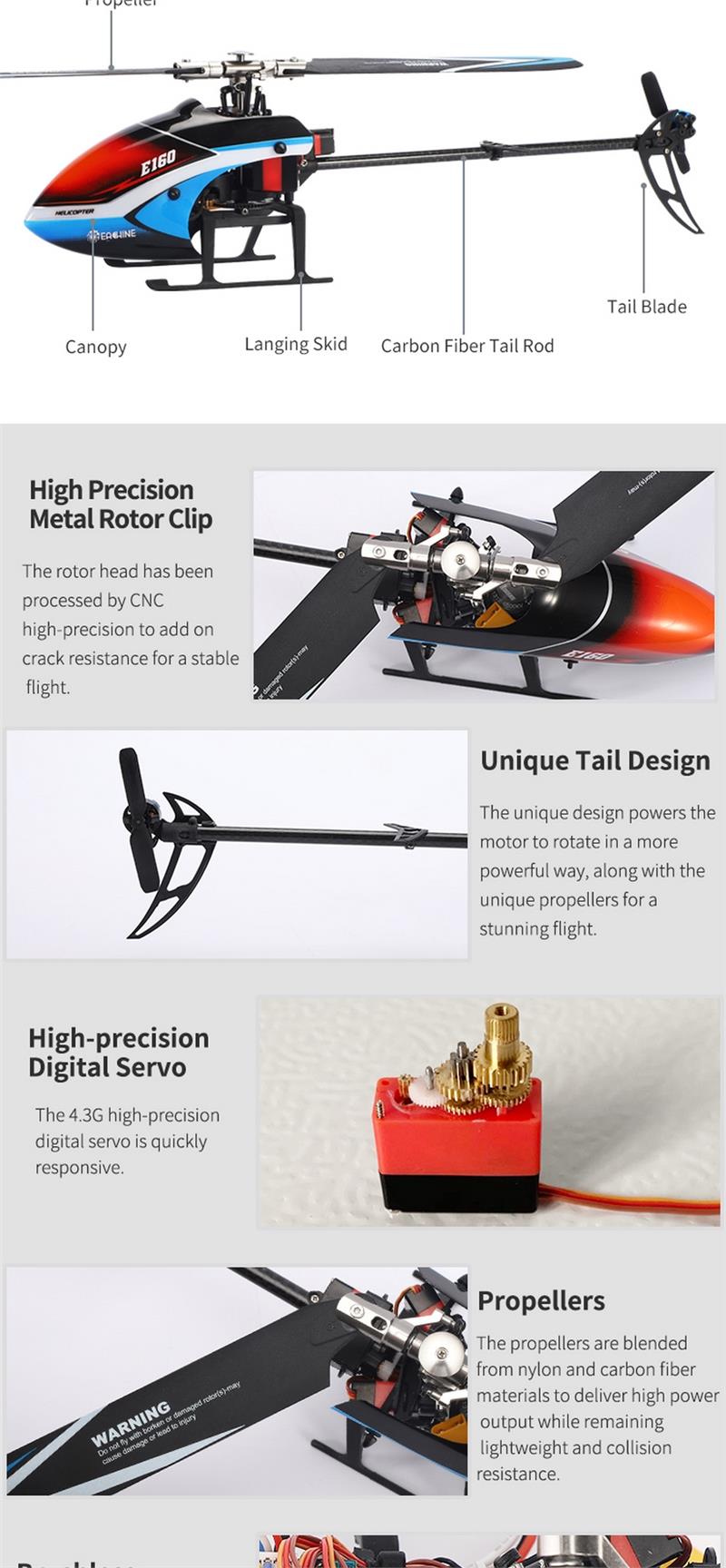2> Adopt all-metal CNC rotor head without aileron design, using aerodynamic principles to design blades to provide strong power and airframe self-stability