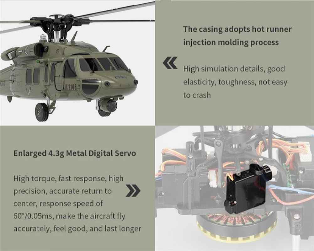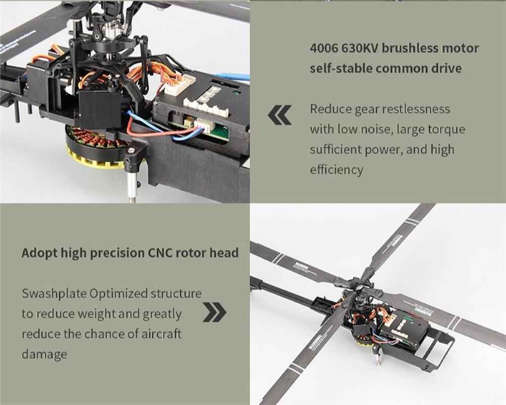3> It adopts a flybarless design, a dual-axis co-drive motor, and an electronic stabilization system, which makes the feel more precise, the flight more stable, and the optimized structure reduces the chance of damage.