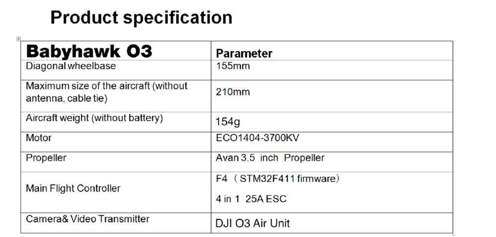 Model: Babyhawk HD ( DJI O3 Air Unit)