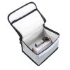 This bag made of super strong fire retardant fiberglass woven fabric and will stand very high temperatures for a reasonable period of time. The bags are stitched together with an extremely strong fire retardant thread and have a zippered lid. Offers extra protection for you, your equipment and your charging location, explosion and flame resistant.