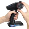 The FLYUEACE T-6819A 2.4GHz 4CH Transmitter is designed for use with RC cars, boats, and tanks. It features a 2.4GHz transmission, allowing multiple users to operate simultaneously without signal interference. The transmitter is equipped with a proportional trigger limit setting, making it ideal for beginners. It includes a programmable fail-safe function and is compatible with high voltage servos. The RX-G4 mini receiver has light slots for headlights and steering lights, enhancing the realism of your models. The transmitter also has a low voltage alarm, indicated by a slow blue LED flash when the battery falls below 4.4V.