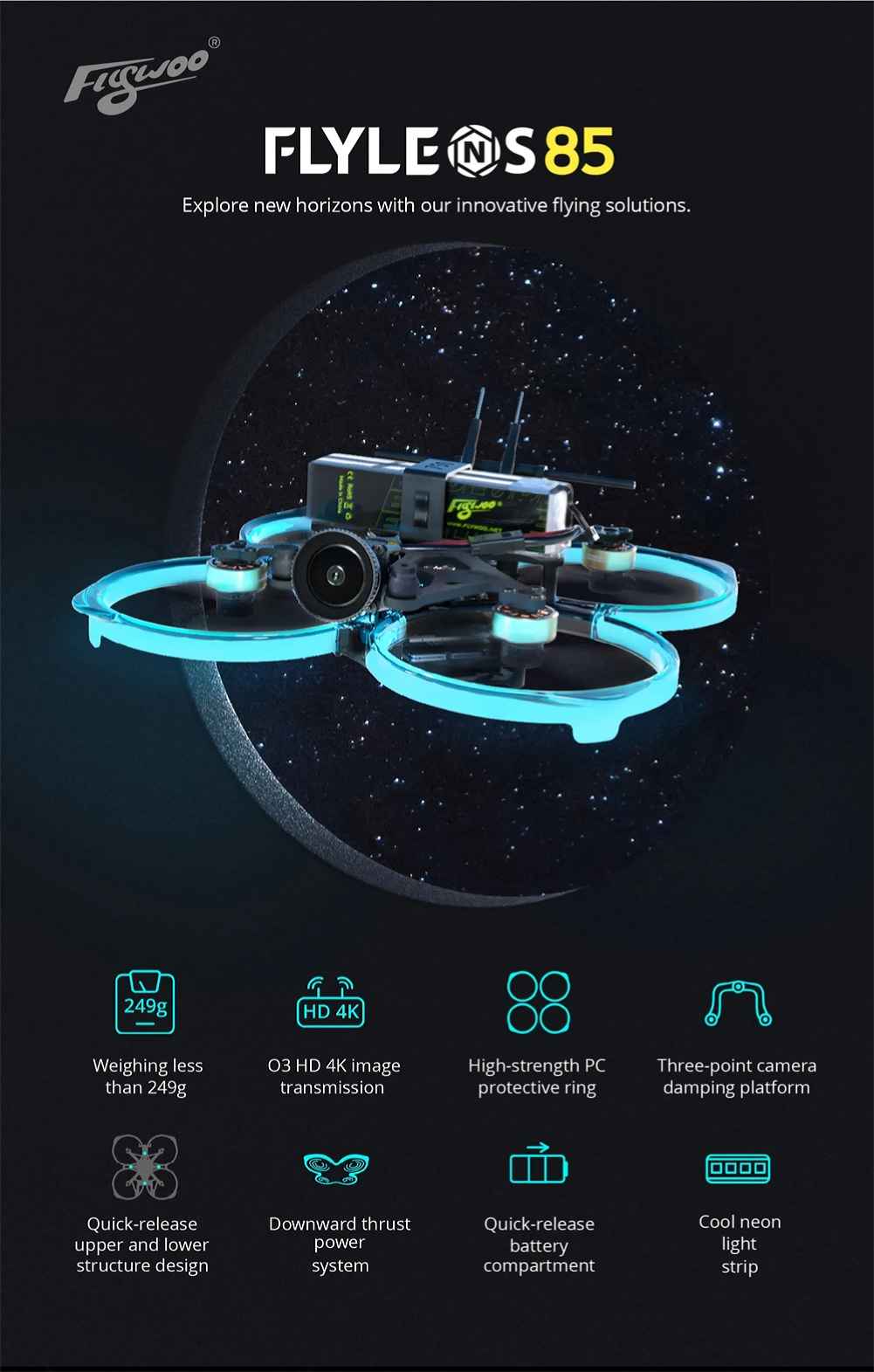 FLYLENS 85 brushless whoop is an innovative small drone carefully crafted by the FLYWOO team that meets international regulations.