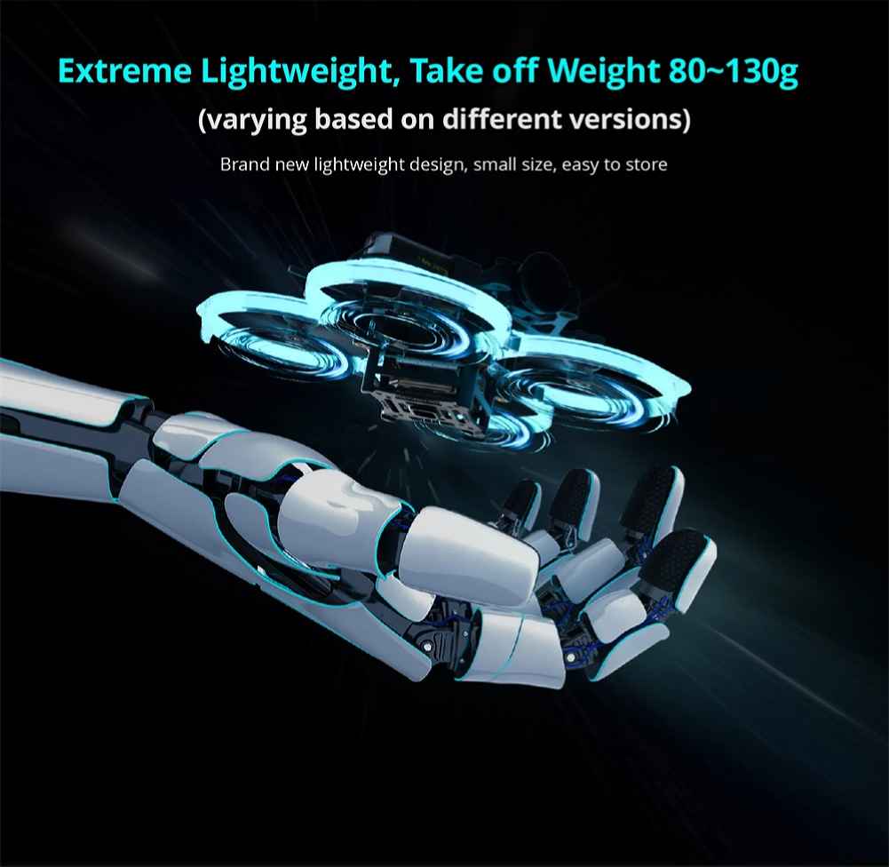 – The drone is lightweight and is equipped with a 2S battery, 1003 motor, and 2-inch propeller, providing sufficient power and longer actual endurance.