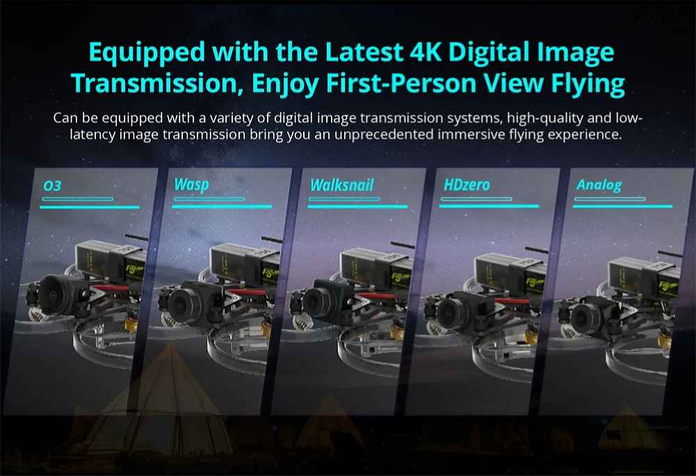 Equipped with the Walksnail Avatar HD Camera V2, the drone offers Gyroflow support and a 2K/120fps/4:3 native sensor camera. This enables users to capture more of their surroundings and produce visually stunning images.