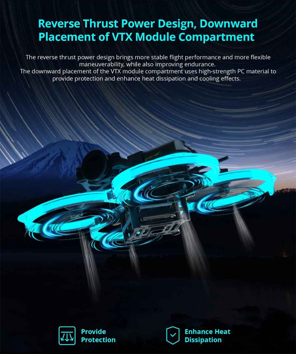 — Reverse push propeller power for stable flight and longer endurance.