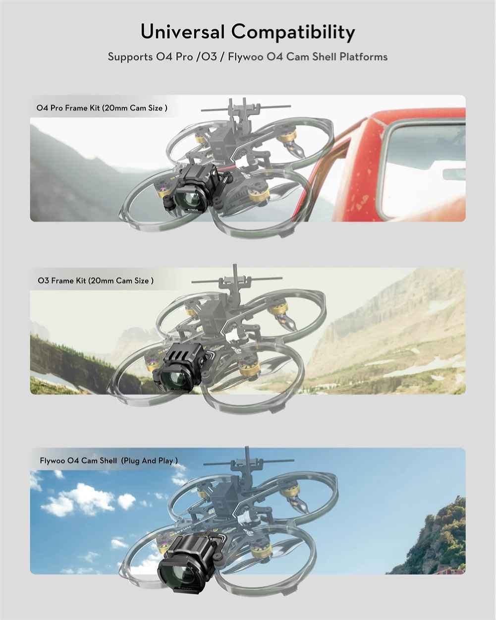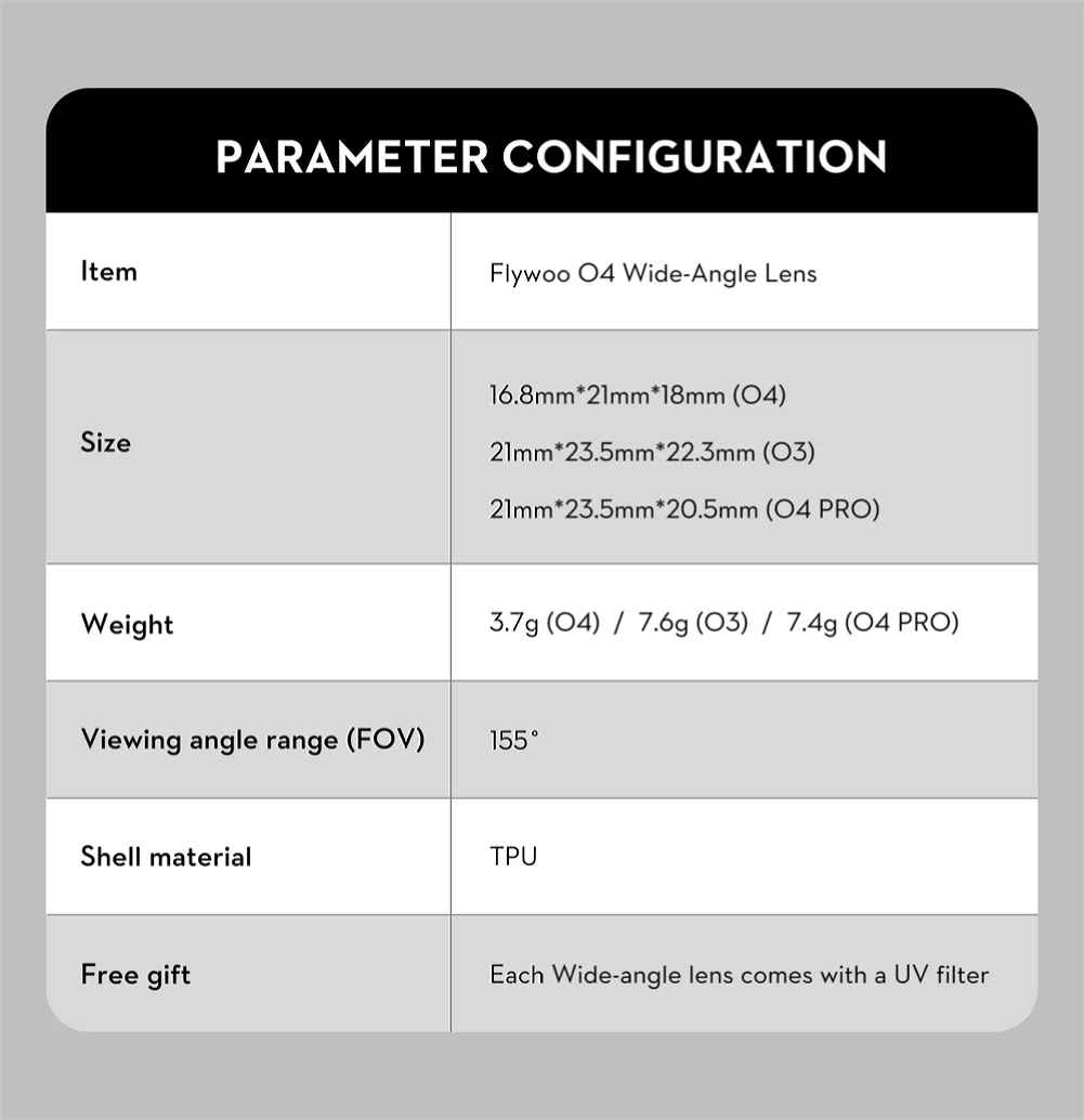 The Flywoo O4 Wide Angle Lens offers a 155-degree field of view, perfect for enhancing the visual experience of your DJI O4 Lite FPV racing drone. This ultra-lightweight lens, weighing just 3.7g, is made from durable TPU material and designed for easy plug-and-play installation. It includes a versatile filter set with two UV filters and ND8, ND16, and ND32 filters, allowing you to capture stunning aerial footage in various lighting conditions. This lens is specifically compatible with DJI O4 Lite drones, ensuring optimal performance and compatibility.