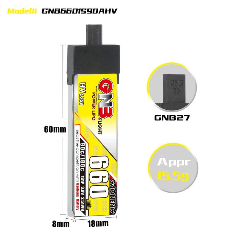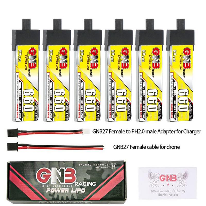 Gaoneng 3.8V 660mAh 90C 1S LiHV Battery A30 Plug With Adapter Cable for Emax Tinyhawk S BetaFPV Beta75X