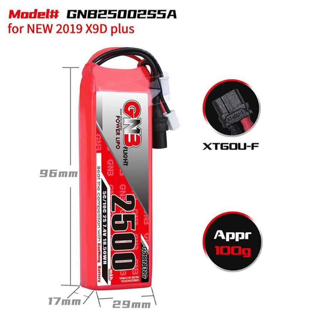 Gaoneng GNB 7.4V 2500mAh 5C 2S LiPo Battery XT60 Plug XH2.54 Plug for Frsky Taranis X9D Plus