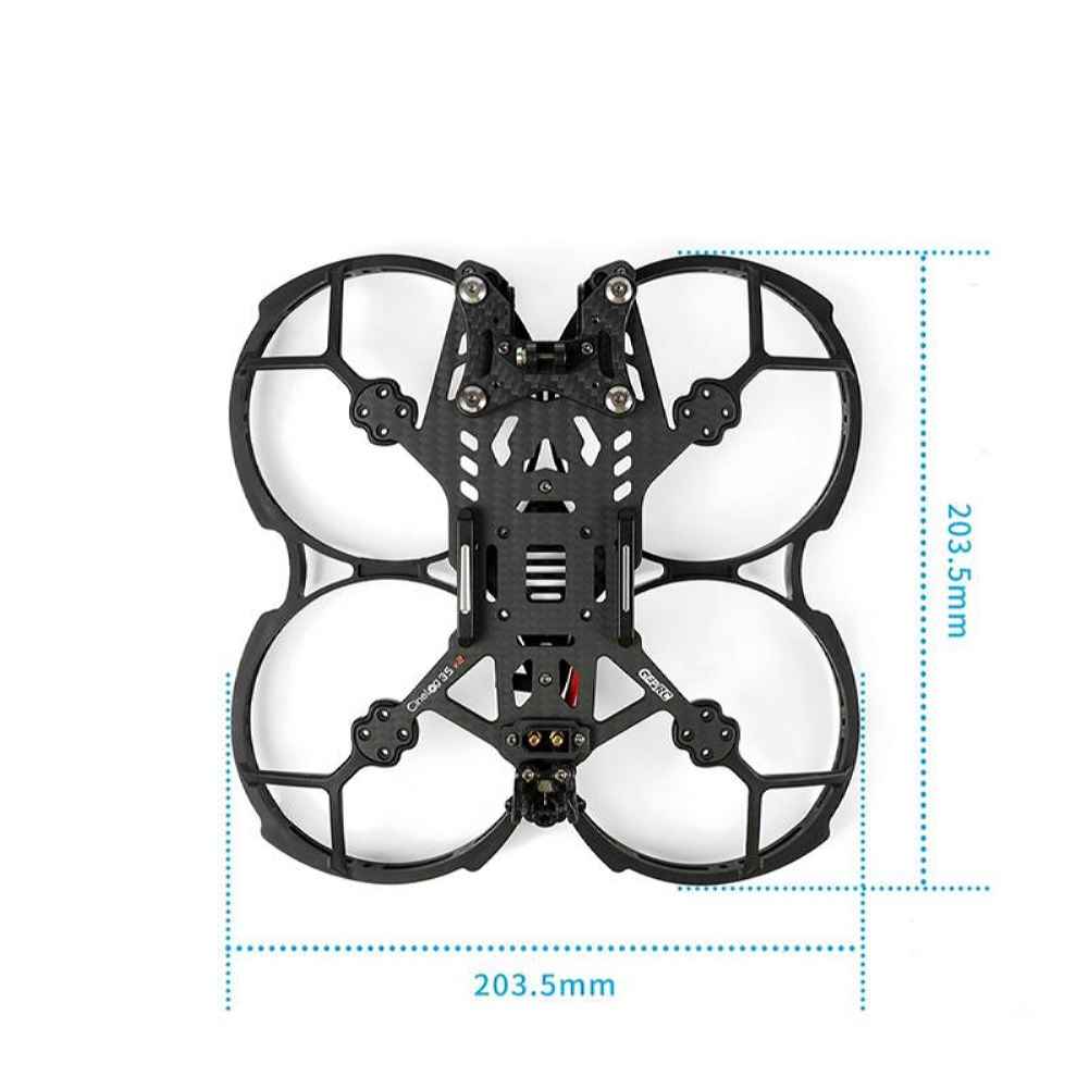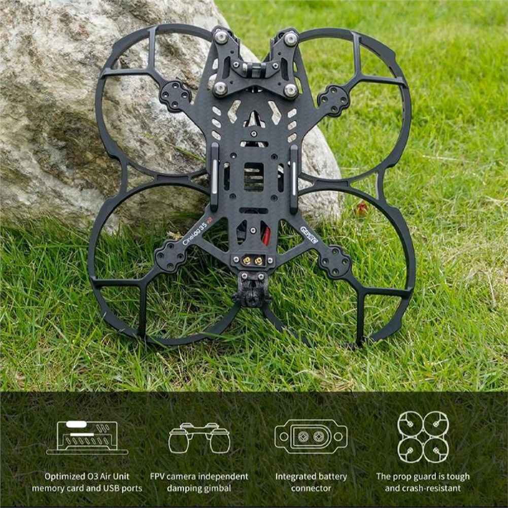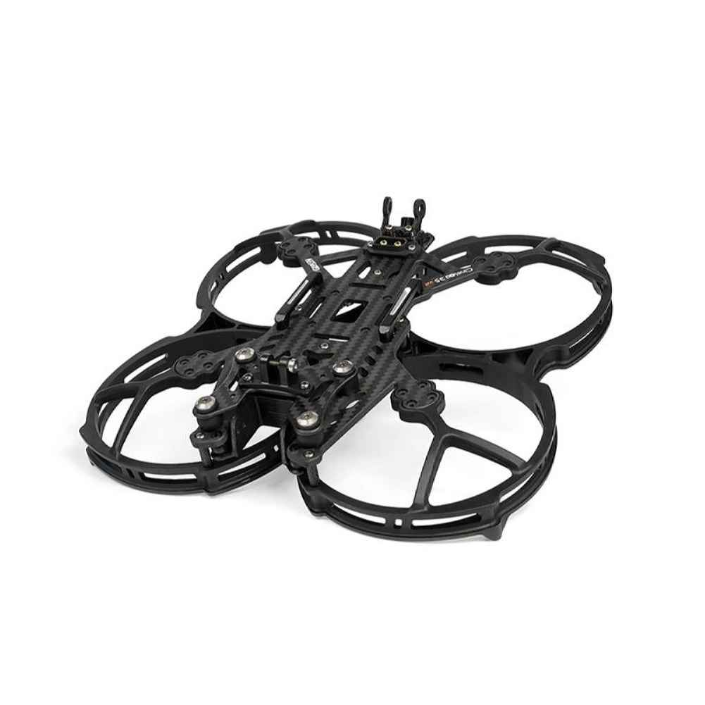 The GEPRC CL35 V2 CineWhoop Frame Kit is meticulously developed to enhance your FPV racing experience. This unassembled kit supports the DJI O3 Air Unit and features an innovative camera shock-absorbing gimbal to eliminate lens IMU resonance, providing an exceptional anti-shake effect. The frame is reinforced with 7075 aluminum columns for added durability, and the prop guard includes a storage card and USB port for easy data access. The integrated XT60E1-M power plug and carbon plate design ensure user-friendly application. With a 142mm wheelbase, this frame is designed for 3.5-inch propellers, promising a stable and exhilarating flight.