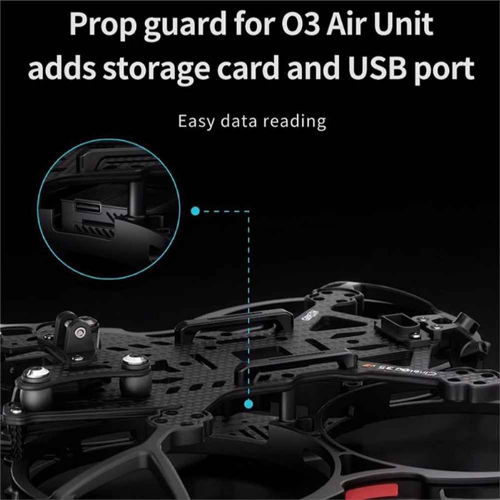 Prop guard for DJI O3 Air Unit adds storage card and USB port for easy data reading.