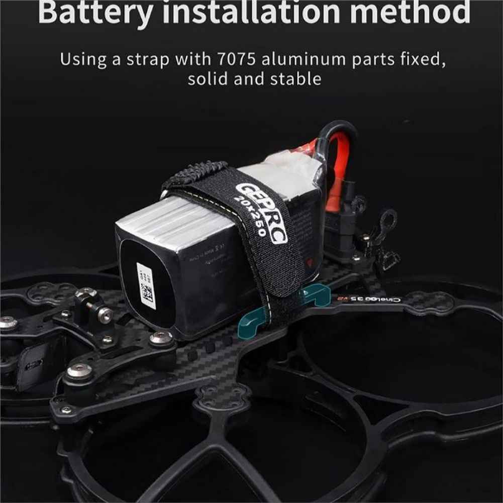Battery installation method using a strap with 7075 aluminum parts fixed.Power XT60E1M plug and carbon plate are integrated and integrated for convenient application. The prop guard adds a storage card and USB port to the DJI O3 Air Unit for easy data reading.