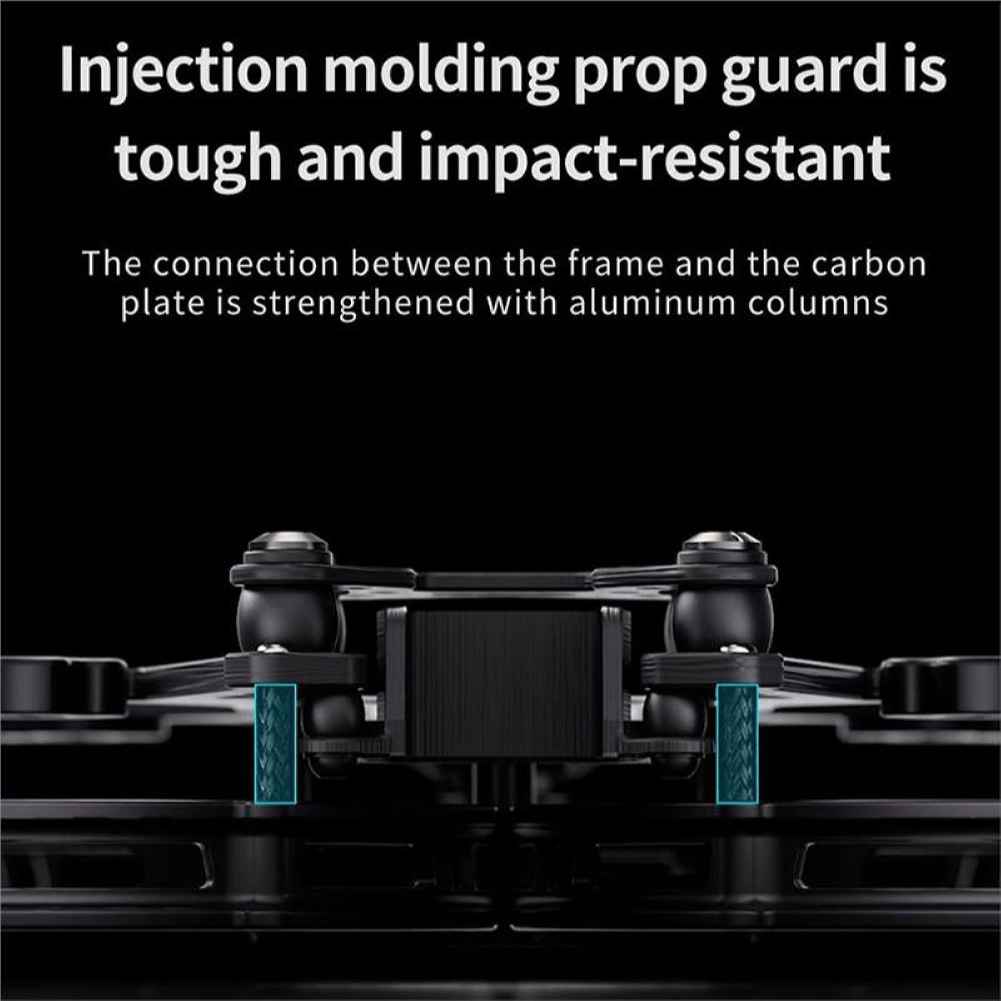 Injection molding prop guard is tough and impact-resistant, and the connection between the frame and the carbon plate is strengthened with aluminum columns.