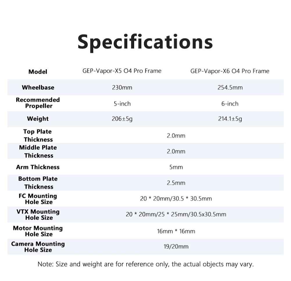 Geprc Vapor X5 230mm 5 Inch / X6 254.5mm 6 Inch 6S Frame Kit Compatible with DJI O4 Pro Air Unit for FPV Racing Drones