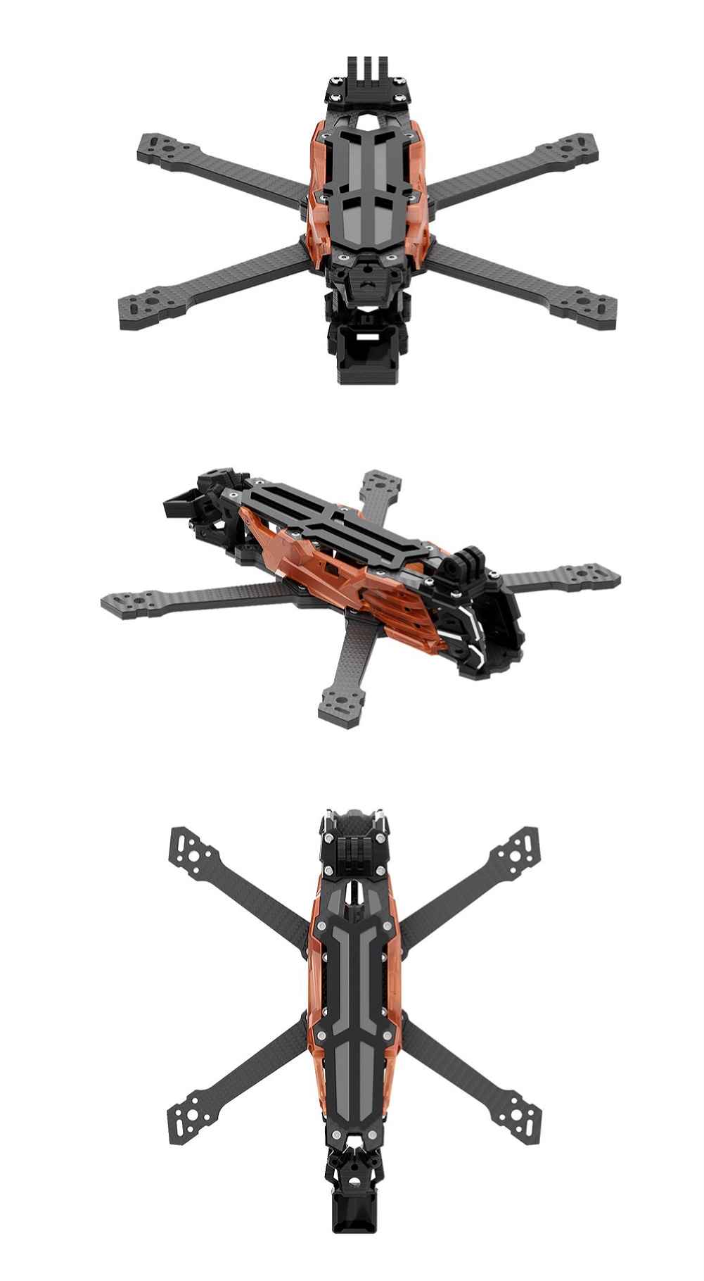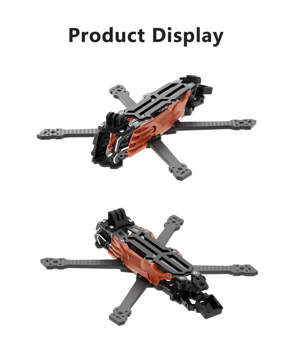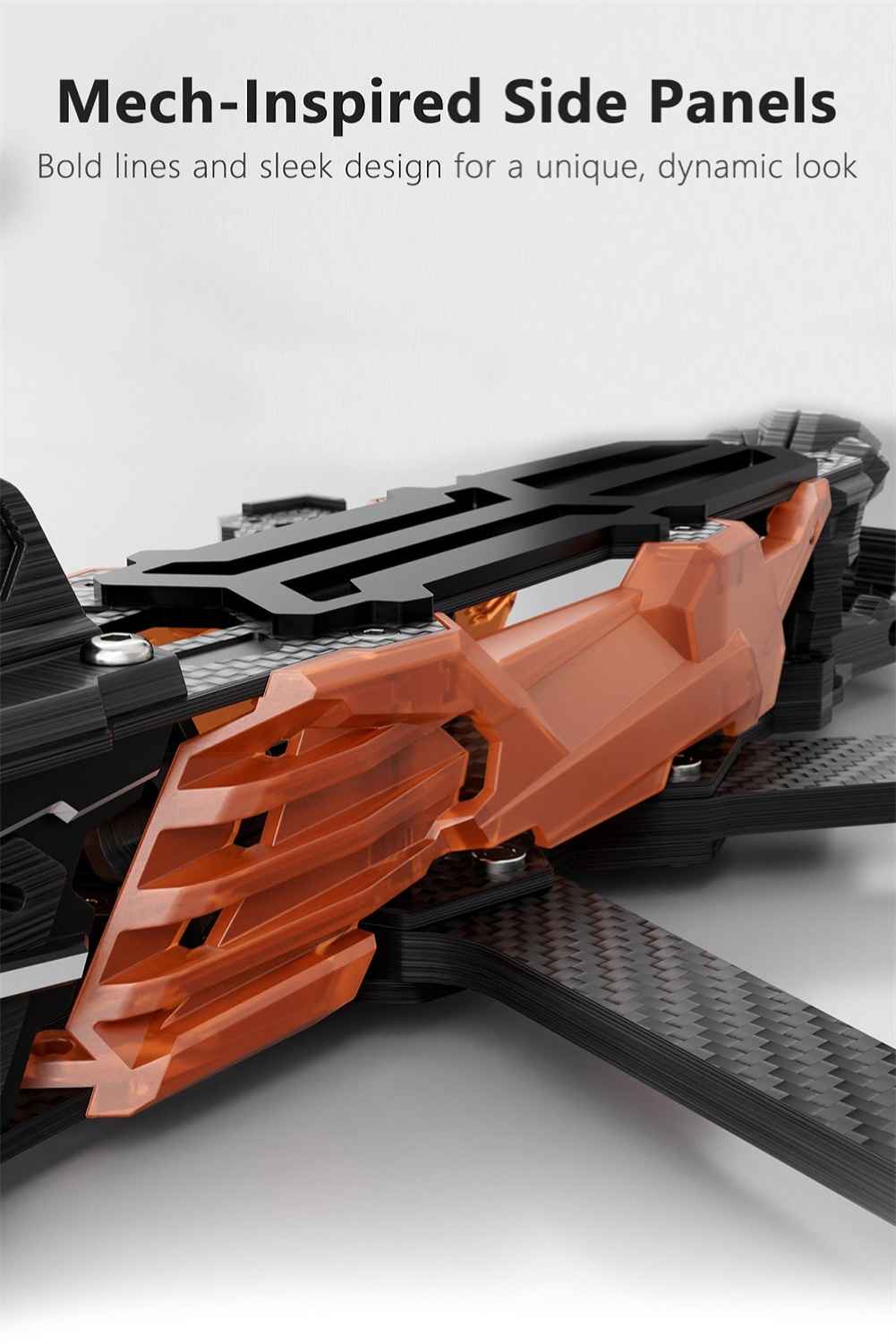 With redesigned aluminum camera parts and improved vibration-damping silicone, this frame offers better compatibility. The new mech-inspired side panels add a bolde, sharp look, enhancing the frame銊檚 stylish design. Made from high-strength carbon fiber, it銊檚 lightweight yet durabl, ensuring top-notch performance in any flight.