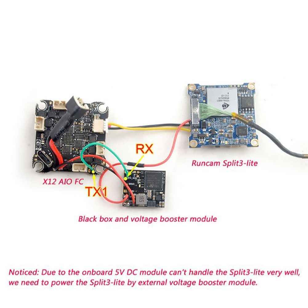 The growing popularity of Gyroflow, an open source stabilizer, makes the storage and reading of gyro data in flight controllers more important. Our Mobula7 1S HD aircraft is equipped with this Black box. The Black box also has a boost module to power the Runcam Split3-lite, making it run stably when the battery voltage is low.