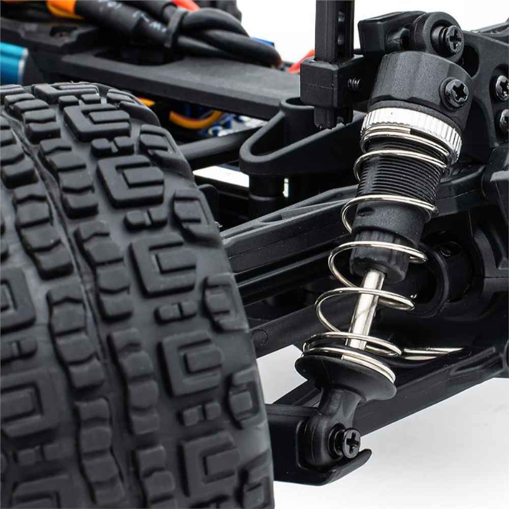 Experience thrilling high-speed racing with the HBX 1/16 Scale Brushless RC Car. This powerful remote-controlled vehicle reaches speeds of up to 45KM/H, thanks to its advanced brushless motor and integrated ESC/receiver. The car features a 2.4GHz 2-channel transmitter for precise control over a 100-meter range. Its four-wheel axle independent suspension system and adjustable aluminum ring suspension provide a smooth ride over rough terrain. The vehicle is powered by a 7.4V, 1300mAh Li-ion battery, ensuring long-lasting performance. With built-in charging protection and high-temperature safeguards, this RC car offers safe and reliable operation.