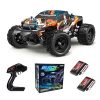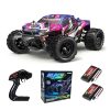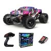 Experience thrilling off-road adventures with the HS 18301/18302/18303/18304 1/18 scale RC car. This high-speed 4WD truck reaches up to 36km/h, driven by a powerful 380 brushed motor and a 30A integrated ESC receiver. Featuring a 2.4G frequency transmitter, it offers a remote distance of approximately 70 meters. The car is equipped with an adjustable strength coilover shock absorber, aluminum heat sink, and LED lights on the front bumper for enhanced performance and style. With a waterproof circuit board and steering servo, it’s built for durability. The included 7.4V 1200mAh Li-ion battery offers about 20 minutes of playtime per charge. Choose from vibrant colors like blue, red, purple, and orange to match your style.