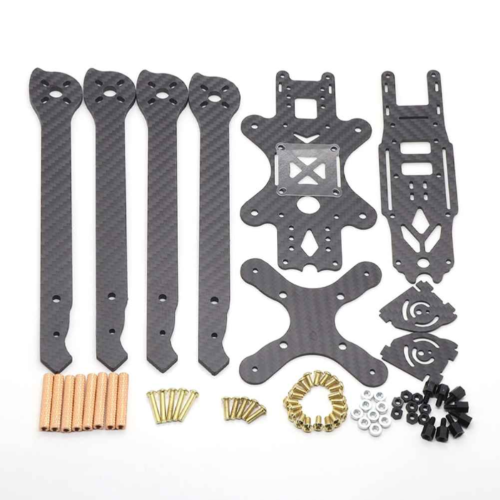 The HSKRC XL5/6/7/8/9 Carbon Fiber FPV Racing Frame Kit is expertly designed for RC drone enthusiasts. With wheelbases ranging from 232mm to 390mm, this frame kit offers versatility for various drone sizes. Constructed from durable carbon fiber and reinforced with aluminum columns, it ensures robust performance. The frame features a 4mm arm board and a 2mm center board, providing stability and support. It accommodates a 28mm camera installation distance and a 23mm frame space, supporting a two-board flytower. Compatible with F3/F4 flight controllers, this frame kit is ideal for propellers ranging from 5 to 9 inches, and motors from 2204 to 2306. Recommended for use with 20A to 60A ESCs and batteries from 1550mAh to 3300mAh.