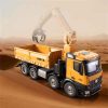 2.4GHz frequency remote control.Using large capacity lithium batteries with strong power.The grab arm can rotate remotely,the upper arm and lower arm can rise and fall independentlythrough remote control.and the simulation action ofthe grab arm’s remote control grasping and releasing.The dump truck has a simulated steering system with flexible movements,remote adjustment of the front wheels, realistic sound and light, and remote control ofthe body’s rise and fall.
