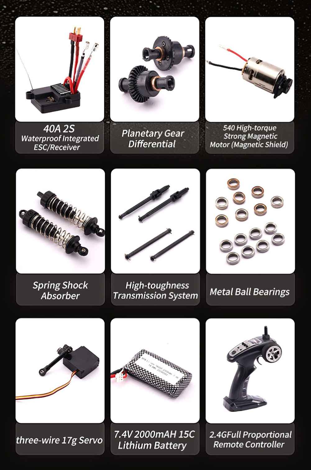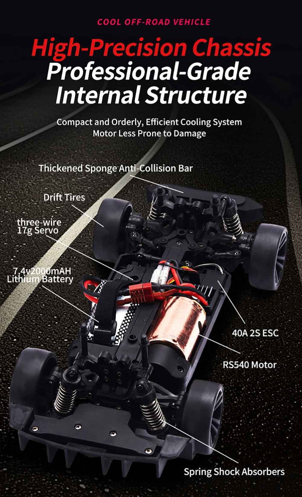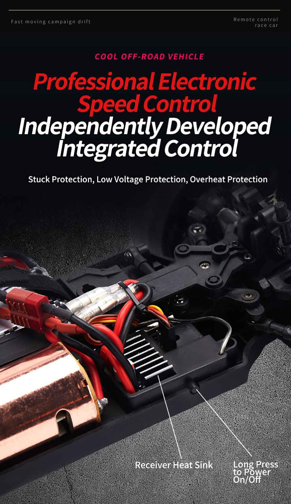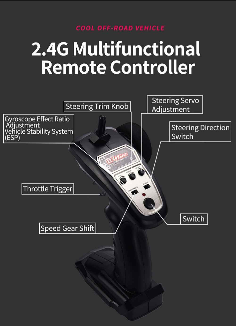 Experience thrilling high-speed racing with the HX 1/14 2.4G 4WD RC Car. Designed for enthusiasts, this model 8616 RC car features a powerful RS540 high torque motor and a 40A 2S integrated control system, delivering a top speed of 30 km/h. The car is equipped with a 3-wire, 17g digital servo and operates at a 2.4G frequency, ensuring precise control up to a distance of 50 meters. With a durable 7.4V 2000mAh Li-ion battery, enjoy up to 25 minutes of playtime after a 3-4 hour charge. The vehicle’s LED lights add a realistic touch, with white front lights and red rear lights. Perfect for drift racing enthusiasts, this RC car offers full proportional control and an exciting driving experience.