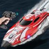 HXJRC HJ820 2.4G RC Boat Capsized Reset High Speed LED Light Speedboat Waterproof 25km/h Electric Racing Vehicles Models Lakes Pools Remote Control Toys