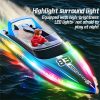 HXJRC HJ821 2.4G RC Boat Capsized Reset High Speed LED Light Speedboat Waterproof Dual Motors Electric Racing Vehicles Models Lakes Pools Remote Control Toys