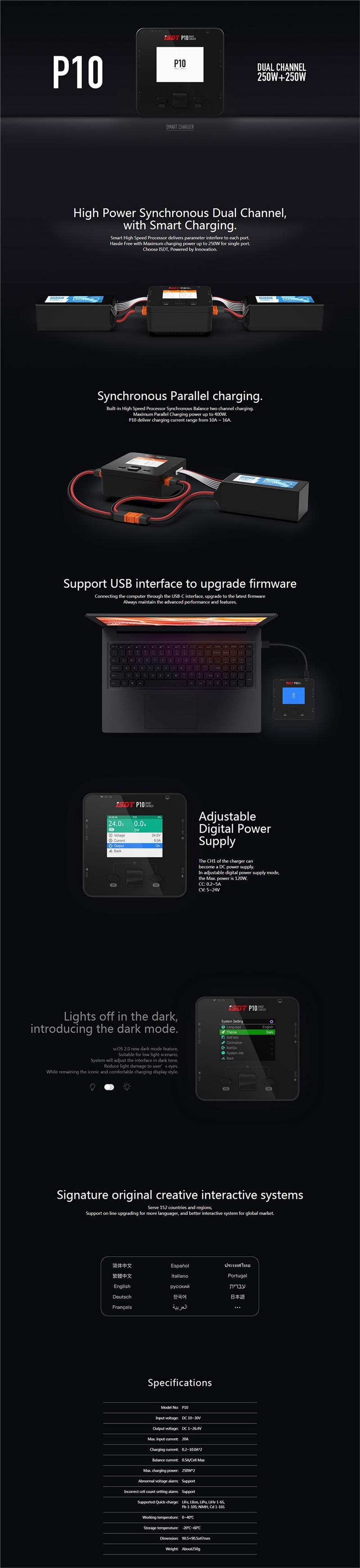ISDT P10 250WX2 10AX2 DC Dual Channel Smart Charger for 1-6S Lipo Li-ion Life NiCd NiMH LiHV PB Battery