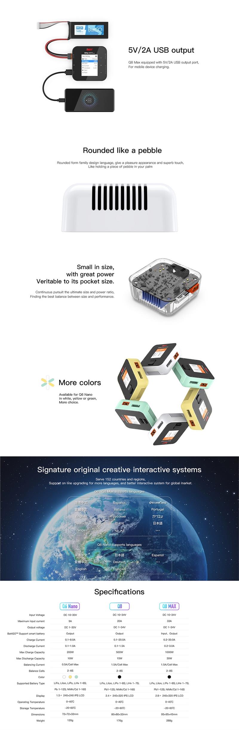 ISDT Q6 Nano BattGo 200W 8A Lipo Battery Charger Colorful Pocket for 1-6S Lipo Battery