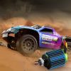 The JJRC Q130 PRO is a high-performance 1/14 scale RC car designed for speed enthusiasts, reaching up to 40km/h. Equipped with a 2847 brushless motor and a 2.4 GHz transmitter, it ensures precise control and stability. The car features a full-proportional control system, allowing for smooth speed changes, braking, and directional control. Its robust design includes front and rear powder metallurgy differentials, a four-wheel-drive system, and oil damping spring shock absorption for superior off-road performance. The LED roof light enhances visibility, and the model is powered by a 7.4V 1500mAh LIPO battery. Safety features include charging protection and motor anti-stuck protection.