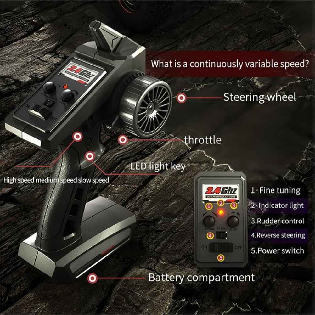 3. 2.4G full proportion synchronous remote control system. Full proportion throttle/steering;
