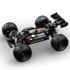 The KFPLAN KF16 RTR 1/12 2.4G 4WD Brushless RC Car is designed for high-speed off-road adventures, reaching speeds up to 60km/h. It features a robust Hobbywing 45A ESC and a powerful Surpass hobby 2845 4370kv brushless motor. The Flysky FS-G4P transmitter offers a remote distance of 200-300 meters. This RC car includes a durable metal chassis, oil-filled shocks, and a central sealed differential for superior handling. Equipped with LED lights and a metal transmission system, it is built to withstand rugged terrains. The car operates on a 7.4V 2200mAh Lipo battery, providing 15-20 minutes of playtime per charge. Its adjustable features and protective systems ensure a smooth and controlled driving experience.