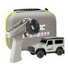 The LDARC R01 is a 1/64 scale micro rock crawler designed for both beginners and enthusiasts. This compact RC car features a 612 motor and S20 steering servo, providing adjustable speed and steering for a customized driving experience. Its robust lighting system includes high and low beam lights, turn signals, and brake lights. With a durable build of electronic, metal, plastic, and rubber materials, it offers a realistic simulation with soft rubber rearview mirrors and mud tiles. The car is powered by a 3.7V 95mAh Li-ion battery, delivering up to 60 minutes of playtime. Ideal for improving coordination skills, this mini climbing truck is also a perfect desktop stress reliever for adults.