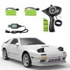 Boutique drift, multi -link design. Style 1:18 Restore the original car, and the appearance is completed in the actual proportion.built-in gyro system,2.4G 3 channels remote controller(with prompt sound),metal drive shaft,customized 150 high speed motor,drift tires,headlight flipped light can be controlled by remote controller C button,four wheel independent suspension,full car ball bearings,full proportional line throttle and steering controlled,tire motor is with belt block protection protection,the battery circuit board is overcharged, overdose, low-voltage protection, automatic frequency, remote control distance of 30-50 meters.