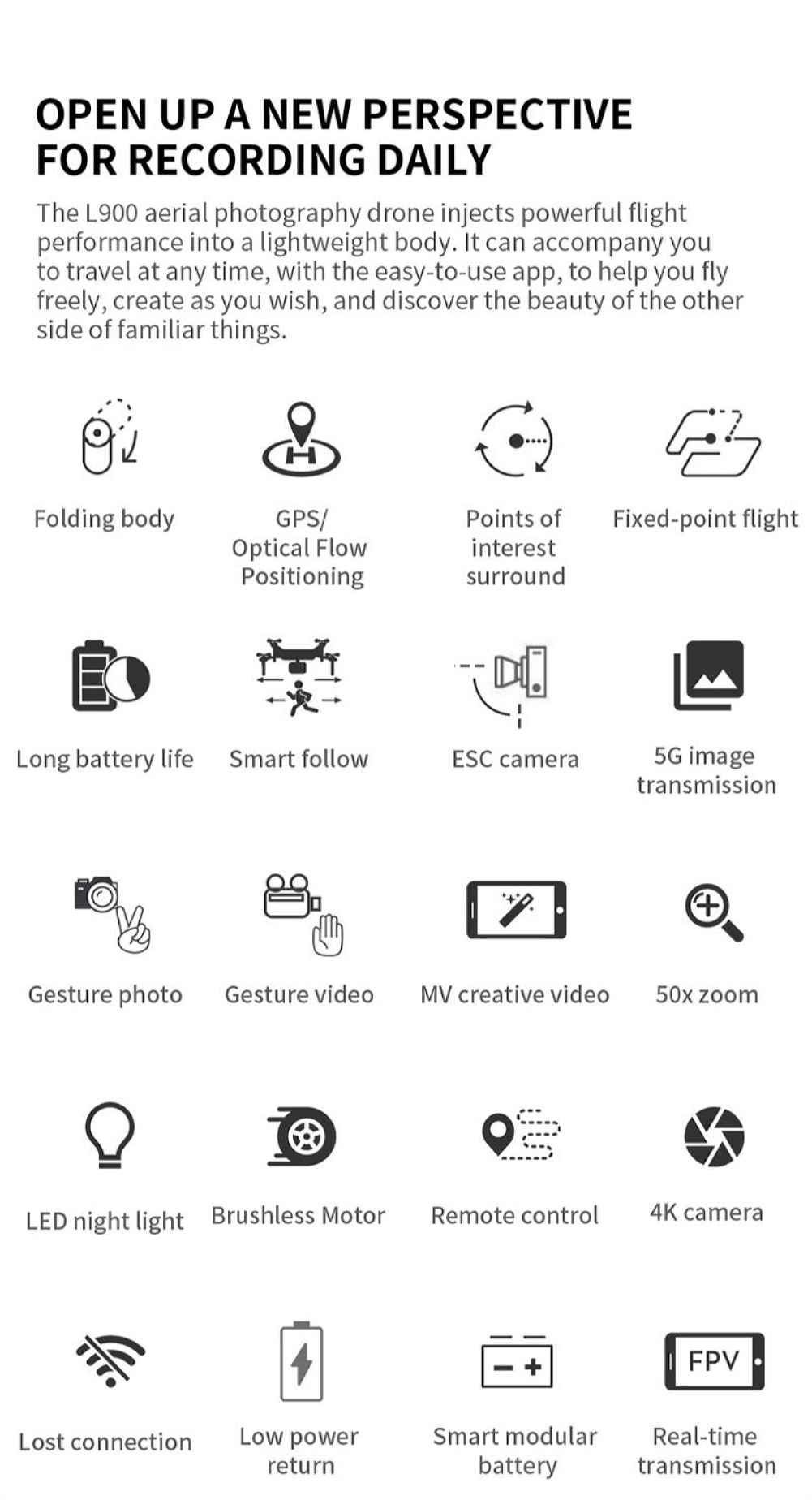 LYZRC L900 Pro 5G WIFI FPV GPS With 4K HD ESC Wide-angle Camera 28nins Flight Time Optical Flow Positioning Brushless Foldable RC Drone Quadcopter RTF
