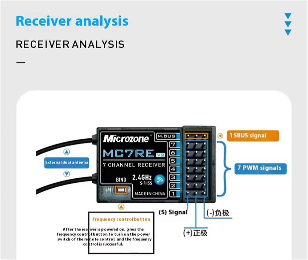 Microzone MC7RE V2 2.4GHz 7CH Dual Antenna PWM SBUS RC Receiver Support Mc6mini Mc7mini Mc8mini Transmitter for RC Airplane Car Boat Vehicle Models