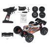 The MJX M162 MEW4 1/16 RC Car is designed for high-speed off-road adventures, reaching speeds up to 39km/h. This 4WD vehicle features a brushless 2835 motor with a heat sink for optimal performance. Equipped with a 2.4 GHz transmitter, it ensures a control distance of up to 45 meters. The car’s power system includes a 35A ESC and a 17g servo for smooth, proportional control. The rechargeable 7.4V 1500mAh battery provides up to 12 minutes of runtime after a 240-minute charge. With a robust design and a wheelbase of 175mm, this RC car is perfect for both forward and backward maneuvers, as well as left and right turns.
