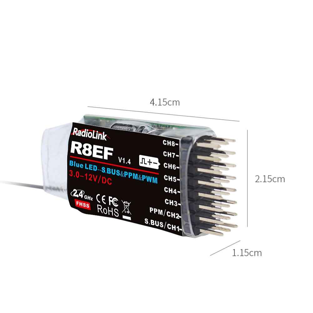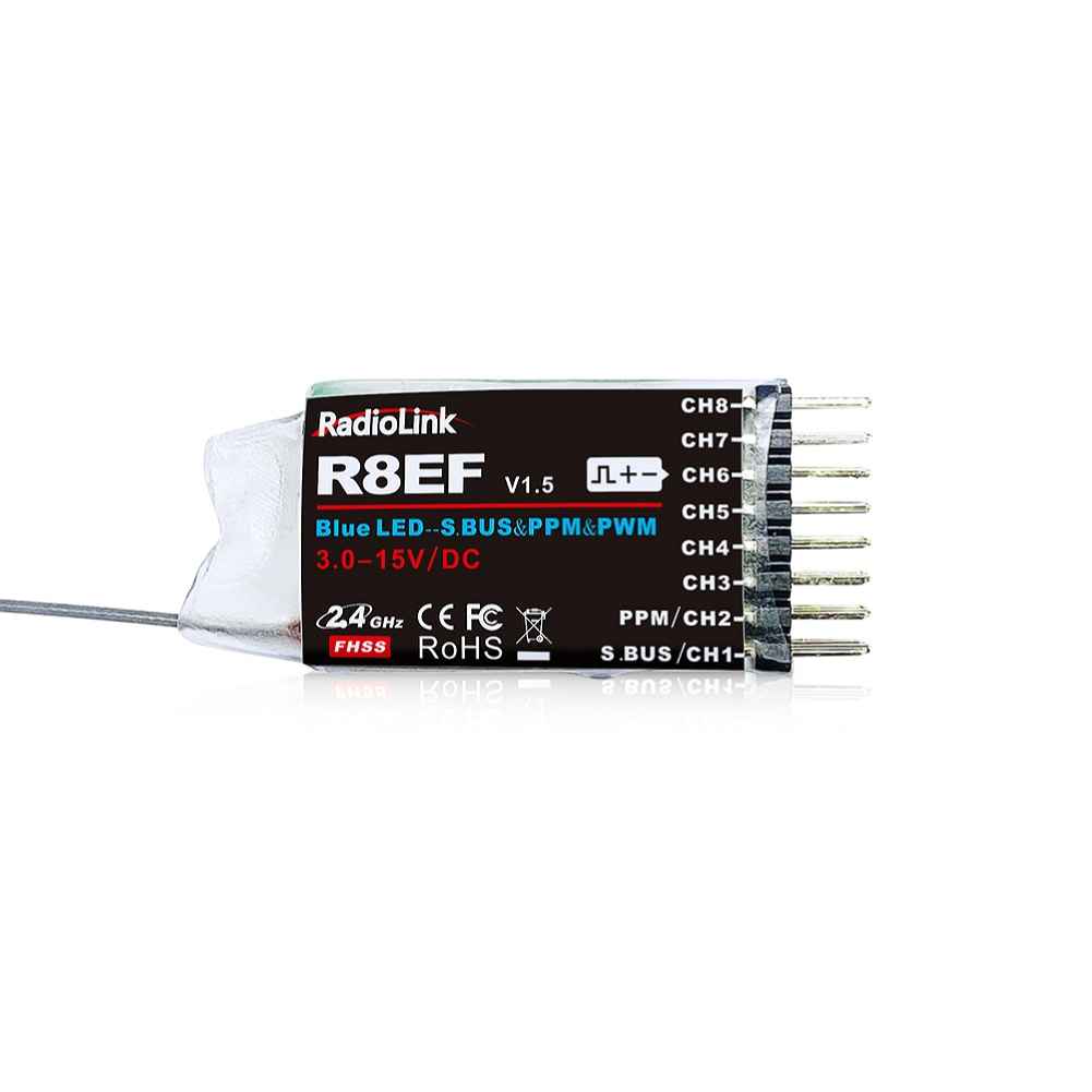 Radiolink R8EF 2.4G 8CH receiver, suitable for RadioLink 8CH remote controllers T8FB (standard), T8S, RC4GS V3, RC6GS V3, RC4GS V2 and RC6GS V3.