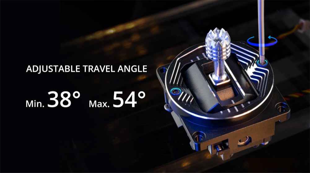Crafted from billet CNC aviation-grade aluminum and equipped with quad precision ball bearings, the AG01 Nano gimbals deliver unparalleled performance and customization. Experience effortless maneuverability with customizable movement angles ranging from 38‵ to 54‵. High-speed and precise sensing, no-contact Hall effect sensors ensures razor-sharp accuracy and effortless centering. Feel the butter-smooth action from the quad precision ball bearings delivering silky-smooth operation for a truly intuitive flying experience.